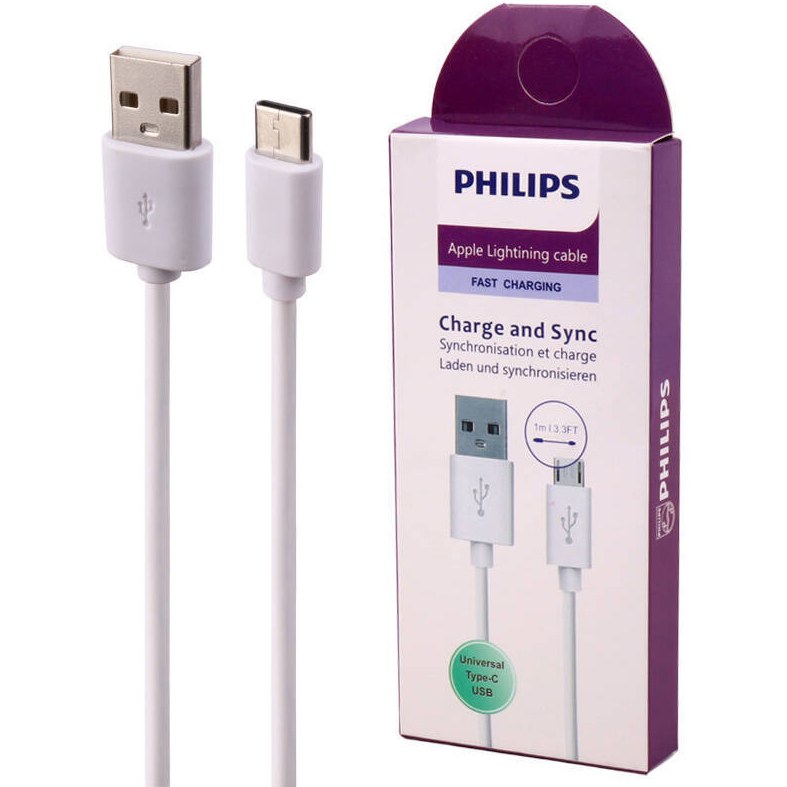 کابل تایپ سی فست شارژ Philips پنج آمپر یک متری ا PHILIPS 5A 1M TYPE-C CABLE